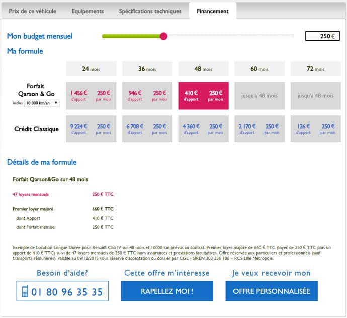 À cela, n’oubliez pas d’inclure le coût mensuel du financement (mensualités ou loyer) de votre titine. Vous souhaitez faire un financement pour votre nouvelle voiture et aimeriez explorer différentes options possibles en fonction de votre situation, de votre budget et de vos souhaits ? Faites-vous une idée précise du budget mensuel à allouer à votre véhicule en utilisant le comparateur de financement automobile.