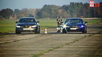 AutoBild et Autocar, magazine automobile allemand et britannique respectivement, ont opposé l’hybride i8 et la sulfureuse BMW M4 sur deux épreuves : un quart de miles en départ arrêté et un tour sur circuit.