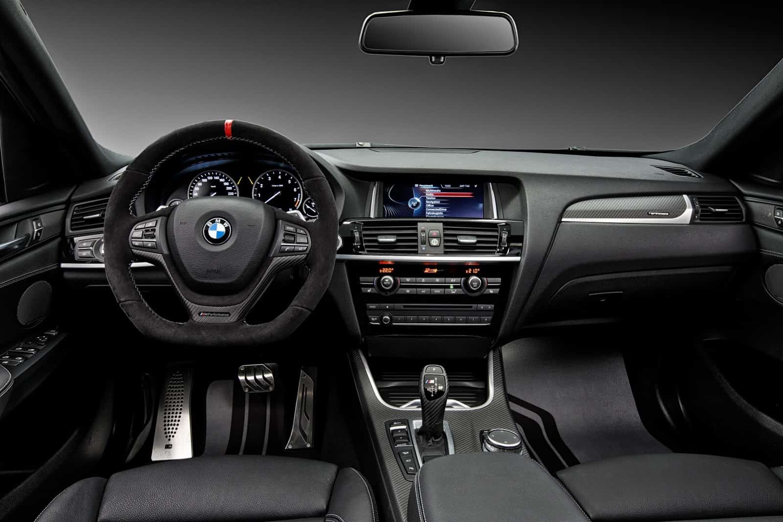 Alliant sportivité et légèreté, ces pièces M Performance s’installent aujourd’hui sur les deux SUV BMW. C’est l’occasion de donner un peu de punch à ces X3 et X4. Ce lot de pièces est composé d’un boulier avant avec un grillage noir, des coques de rétroviseurs en carbone, d’un discret becquet en carbone uniquement présent sur le X4, des stickers latéraux noir. Des jantes légères de 21 pouces viennent compléter la préparation extérieure.