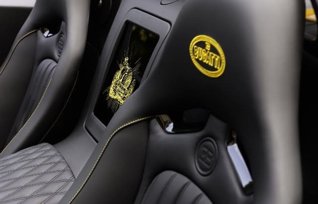 A l’extérieur de cette Veyron One Of One, la française adopte une robe noire et jaune faisant référence à ses origines (Type 41 Royale, Type 55 ou encore la Type 44 présente sur certaines photos. Petit détail, on retrouve sur la calandre les initiales « PL » qui sont sans doute les initiales de cet heureux propriétaire. Les jantes reprennent le coloris bi-ton jaune et noir.
