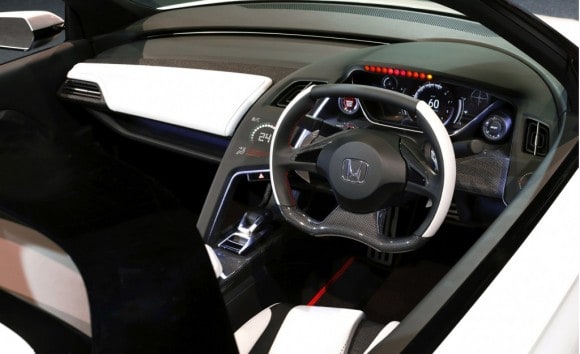 Quant à l’intérieur, Honda inaugure un nouveau type de conception. En effet, Honda utilise à foison la fibre de carbone et ajoute un petit nombre d’écrans numériques.