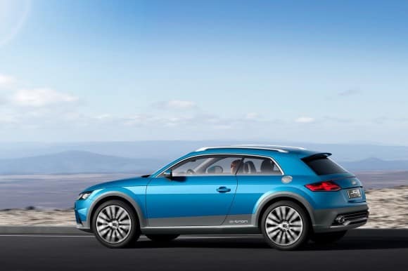 Ce concept Audi Allroad reprend l’intérieur de la future Audi TT 2015 et son écran numérique à la place du compteur traditionnel. Carscoops termine l’annonce de ce modèle en indiquant une taille proche de l’A3 et une motorisation hybride en raison de l’inscription « e-tron » sur le bas des portes.
