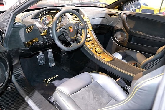 Cette voiture passe de 0 à 100 Km / h en 2,9 secondes et atteint une vitesse de pointe de plus de 350 km/h. Pour ce faire, la supercar s’équipe aussi d’une boite séquentielle automatique à 7 rapports .Son châssis a été créé en combinant des fibres de carbone, de titane et de Kevlar. C’est clair, c’est propre ! Par contre, l’habitacle eh bien !!! Je vous laisse voir ça avec la photo ci-dessous.
