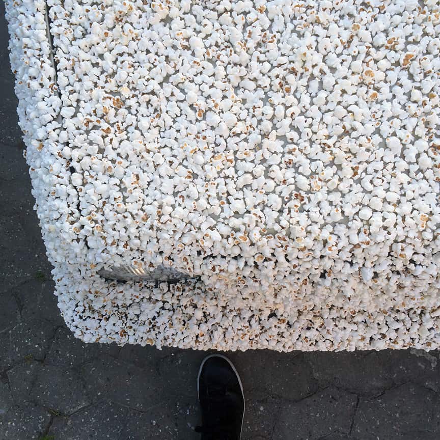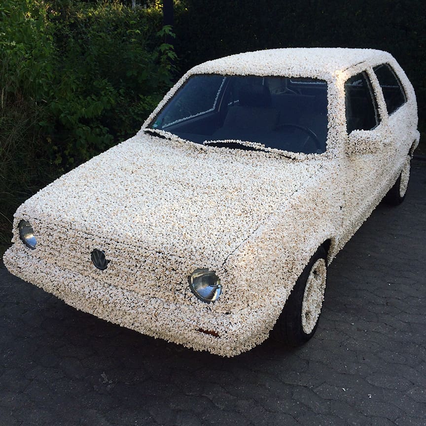 Lucas Danehnl, étudiant d’art en Allemagne, a eu une idée extrêmement farfelue. Il a ainsi décidé de recouvrir sa Golf 2 de 1983 de pop-corn.