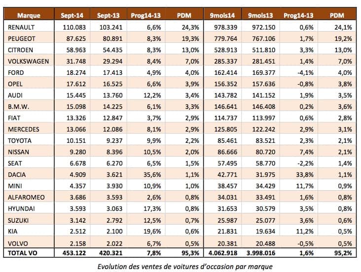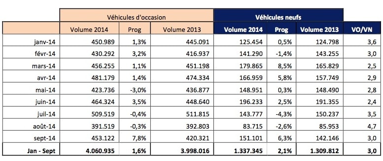 En parallèle de ça, nous tenons à souligner la bonne forme du marché des véhicules neufs : augmentation de 6,3% en septembre avec 151 101 immatriculations. Ce marché n’est pas en forme depuis quelques années. Le Mondial de l’Auto va aider les constructeurs à vendre leurs véhicules, Peugeot a déjà fait le bilan de cette édition 2014 en terme de prises de contacts et de ventes.