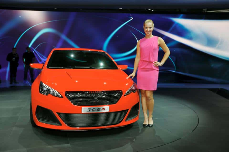 Sabine Lisicki, joueuse de tennis allemande et nouvelle ambassadrice de Peugeot, était aux côtés de cette 308 R lors de la présentation officielle à Francfort.