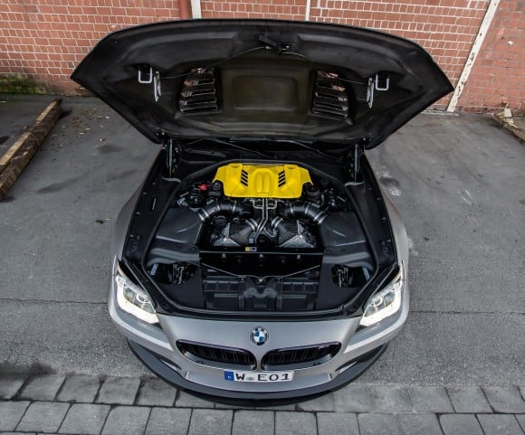 Le préparateur commence à s’attaquer au V8 4.4 l bi-turbo. Manhart augmente la puissance de ce 8 cylindres en V pour en sortir 743 chevaux et 953 Nm de couple, au lieu de 560 chevaux et 680 Nm de couple de série. Pour obtenir cette puissance, l’ECU, le système d’air et d’échappement ont été revus sur cette M6.