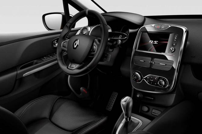 A l’intérieur, le véhicule est équipé d’une sellerie cuir (sièges chauffants à l’avant) avec surpiqures grises, de seuils de porte badgés Monaco GP, vitres latérales arrière et lunette arrière sur-teintées, du R-Link, et des touches de gris sur les éléments de l’habitacle (aérateurs, levier de vitesse,volant etc). Effectivement, c’est pas très gai, sobriété et sportivité sont à l’honneur.