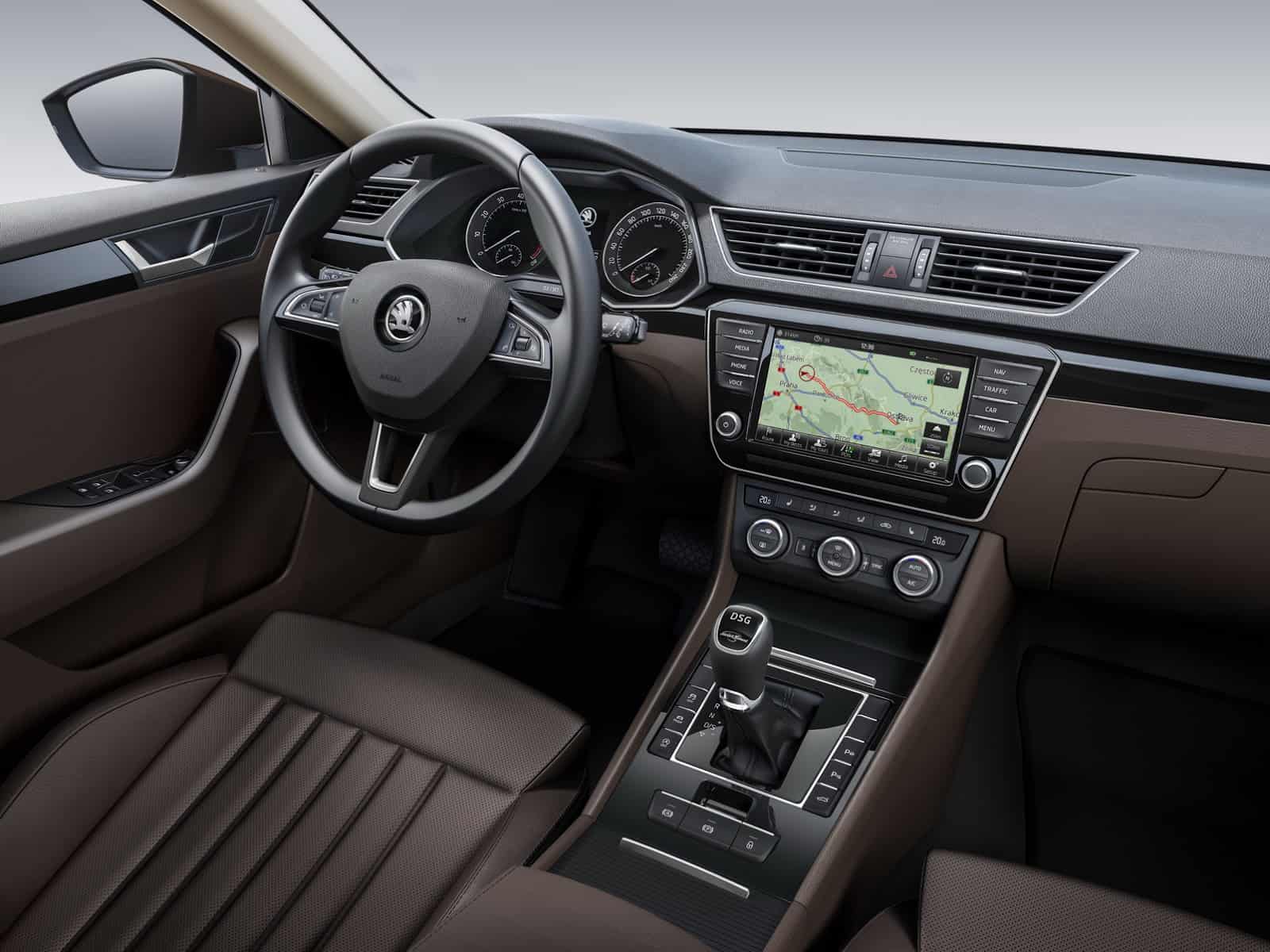 Comme attendu, la routière tchèque adopte la plateforme MQB (déjà utilisée par les Passat 8, Golf 7 et Octivia) qui permet de disposer d’un empattement de 2,84 m. Si l’empattement fut augmenté de 8 cm, le porte-à-faux est réduit de près de 6,1 cm, le poids total est diminué de 75 kg et le coffre gagne 30 litres de plus pour porter à 625 litres la capacité totale.