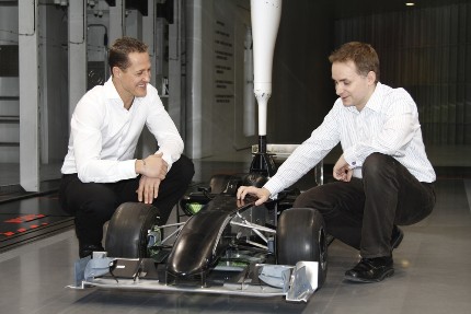 Voici les nouvelles couleurs de sa monoplace W01de l'équipe Mercedes GP. Les premiers essais collectifs débutent en effet aujourd'hui en Espagne et c'est Nico Rosberg qui testera en premier la monoplace ce matin. Il alternera avec Michael Schumacher tout au long des 3 jours.