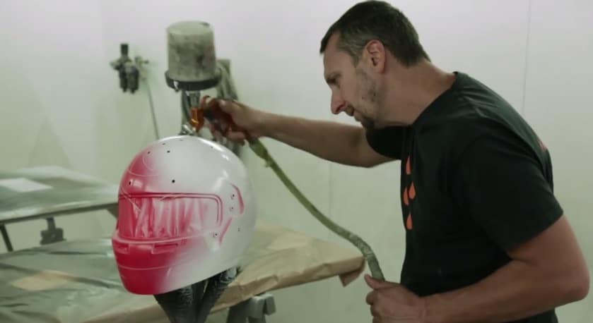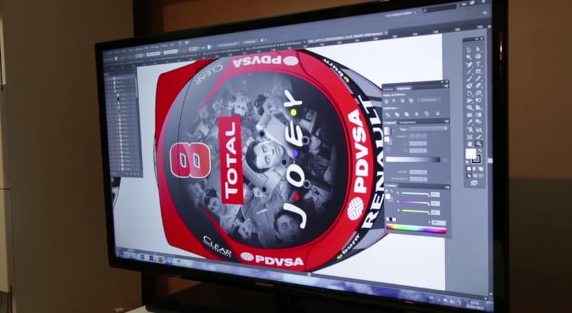 Mais toutefois, la conception d’un casque ne réside pas uniquement à le décorer. Il y a des normes d’homologation à respecter en cas d’accident pour offrir une sécurité maximale au pilote, des normes de sponsors – sport où sont omniprésents les marques (Total, PDVSA, Burn, Renault, etc). Également, la peinture ne doit pas excéder un certain poids afin d’offrir de la légèreté et de la mobilité au pilote porteur du casque. Cette étape de mise en peinture se passe chez Eric Milano d’Aero Magic, il arrive à respecter les normes cités précédemment tout en offrant une peinture légère : Adrien parle d’une peinture ne pesant que 50 grammes. Ce nombre est assez incroyable quand on compte le grand nombre d’éléments présents sur chaque casque de chaque pilote.